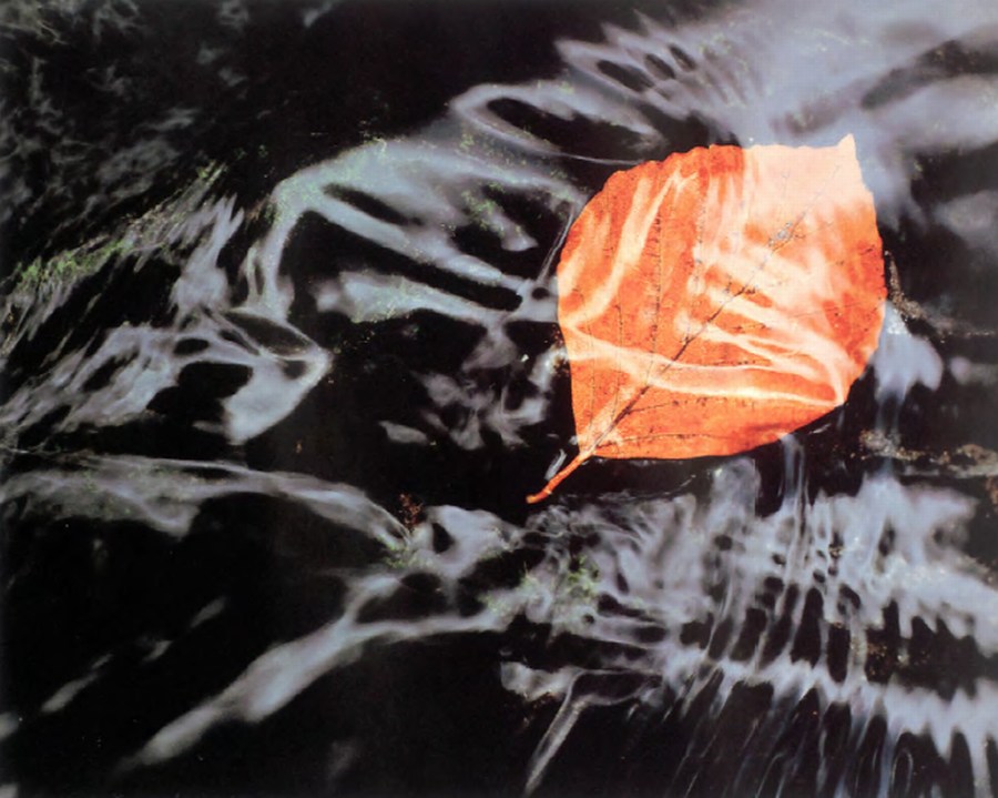 В это время года особенно интересно вести съемку у ручьев. Яркие краски осени отражаются в воде. Особенно хороши опавшие листья в тихих заводях, где нет течения. Я сделал несколько снимков с различной экспозицией, снимая один-единственный листок в ручье. Чтобы справиться с бликами, я применил поляризационный фильтр и использовал вспышку, чтобы затемнить дно ручья. Mamiya 645,120-мм макрообъектив, поляризационный фильтр, вспышка, Fuji Velvia |