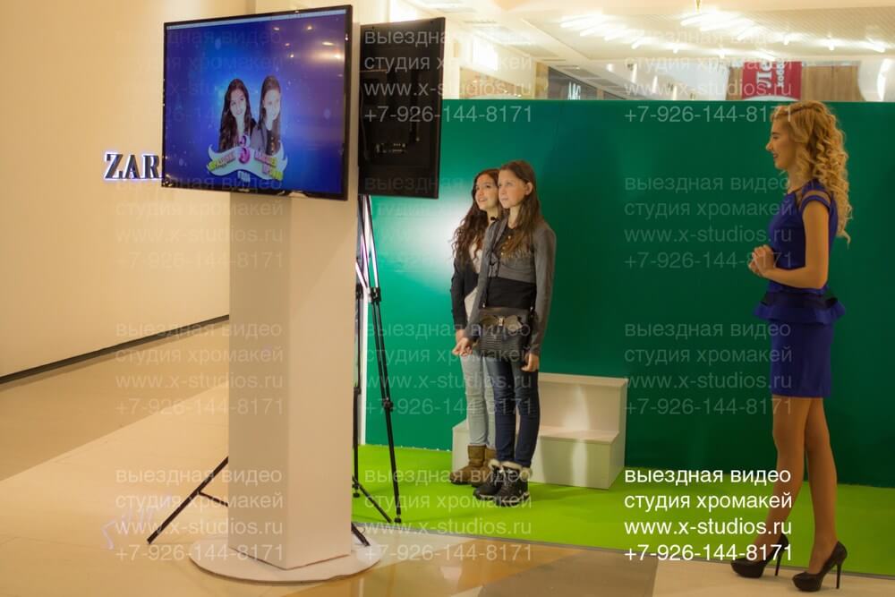 Как происходит работа выездной видеостудии хромакей с он-лайн видео трансляцией на экран.