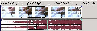 1. Перетащите медиа-файл от окна Vegas Pro Explorer или Project Media до середины существующего события (или расположите курсор и дважды щелкните по файлу в окне Vegas Pro Explorer или Project Media).