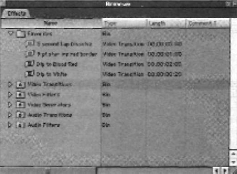 Картинка 1. В папке Favorities (Избранные) вы держите все персонально настроенные вами переходы. Они будут сохраняться в течение всех видеомонтажных сессий. |