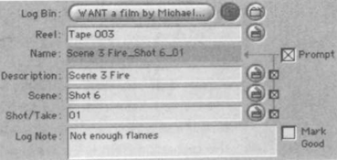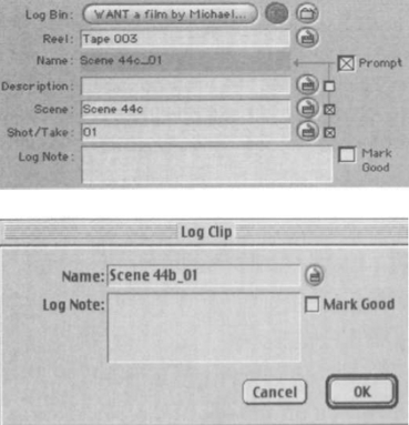 | Картинка 12. Диалоговое окно Log Clip содержит поле Log Note (заметки) и меню Mark Good (для обозначения удачности дублей), которые позволяют вам ввести дополнительную информацию о клипе, который вы расписали. |