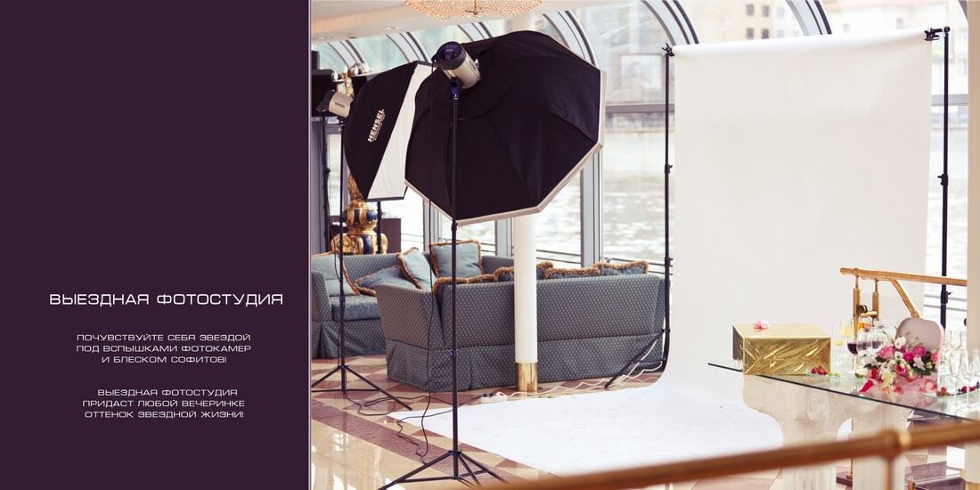 - Фотобудка или фото стойка не могут перемещаться на празднике и снимать одновременно в разных условиях (велком зона – банкетный зал).